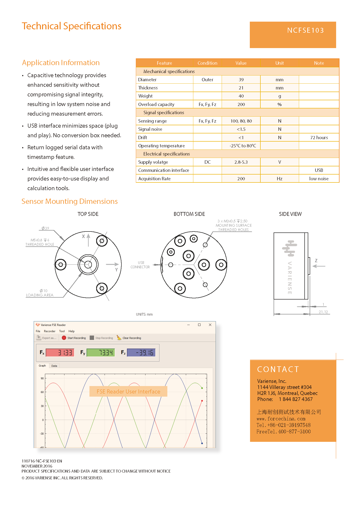 美國VARIENSE FSE103三軸力傳感器