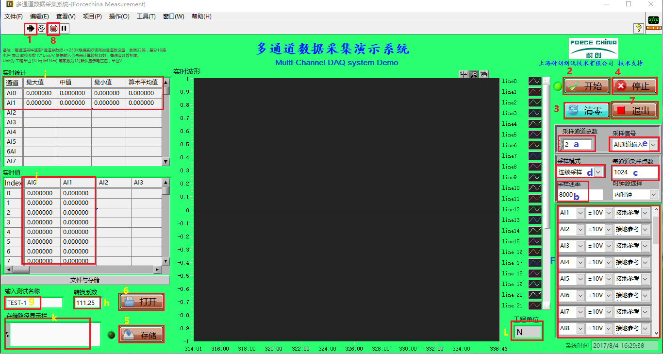 八通道數(shù)據(jù)采集分析系統(tǒng)
