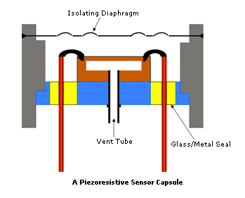 通常采用隔膜式設計,使用應變片,應變片粘接或擴散到其中,在壓力引起的應變下,電阻值發生變化。在電容技術中,壓力隔膜是電容器的單板,在壓力引起的位移下改變其值。